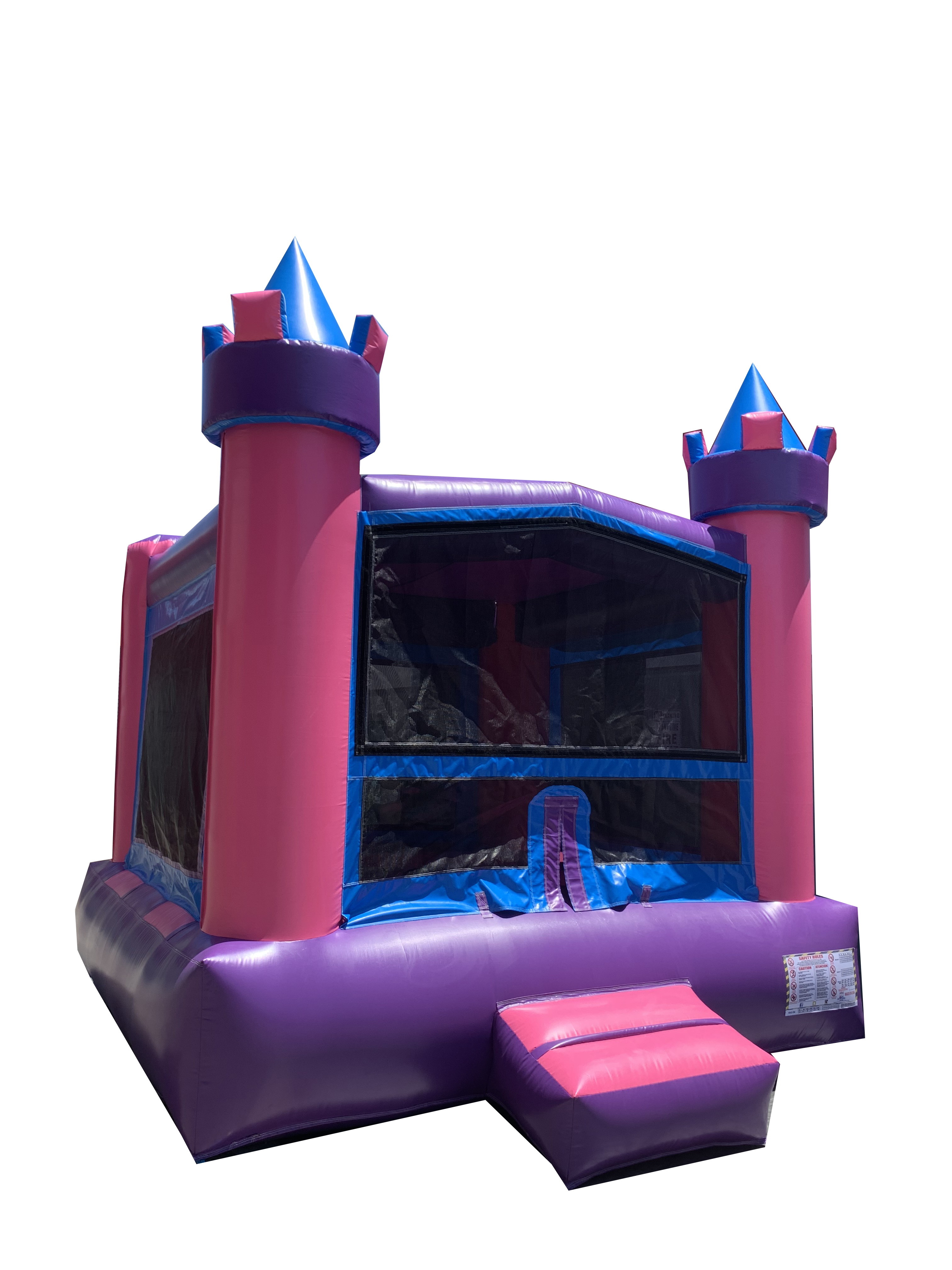 Our inflatable Bounce cCastle is a classic unit with a sleek design featuring Bounce Castle style spires. This commercial bounce castle 9x9 for sale features an alternative color scheme .Our Products are made and designed with commercial 18oz PVC knife coated vinyl “lead-free” UV resistant that will last extreme weather conditions.