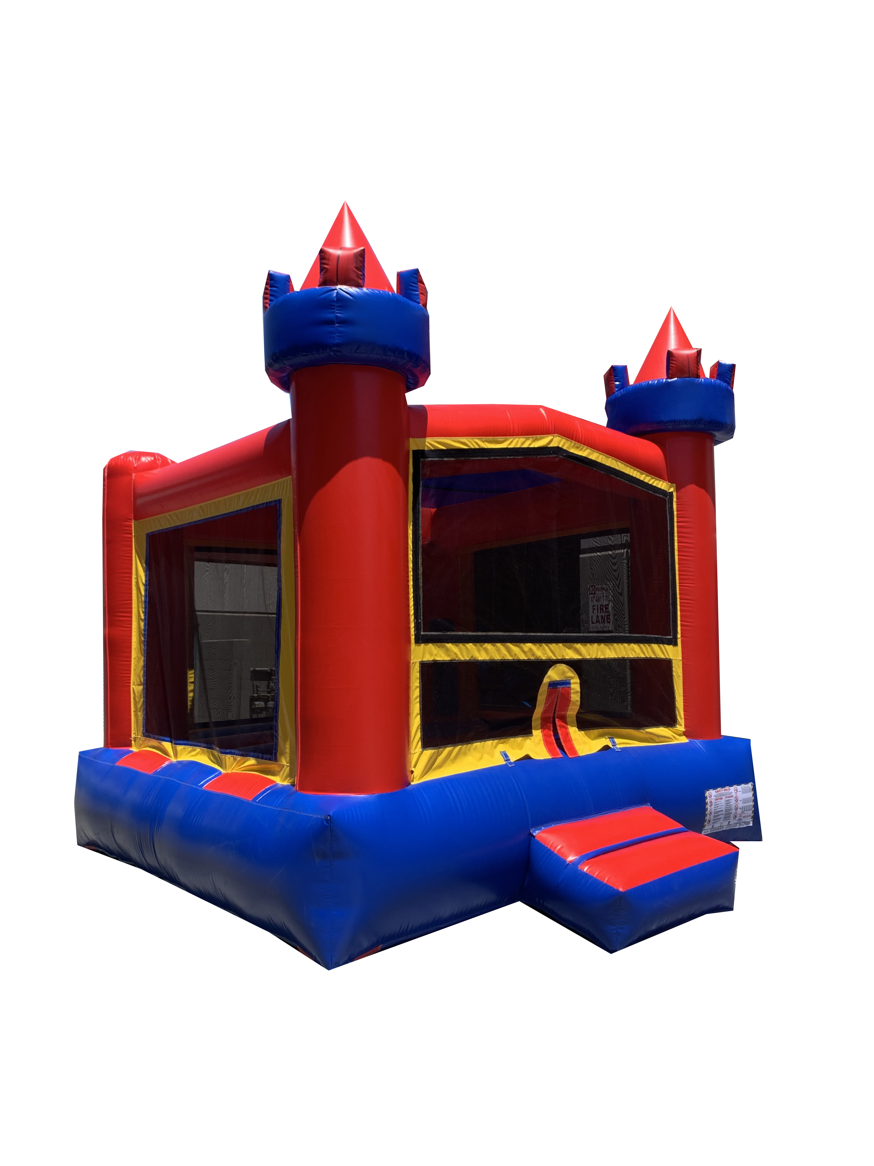 Our inflatable Bounce cCastle is a classic unit with a sleek design featuring Bounce Castle style spires. This commercial bounce castle 9x9 for sale features an alternative color scheme .Our Products are made and designed with commercial 18oz PVC knife coated vinyl “lead-free” UV resistant that will last extreme weather conditions.