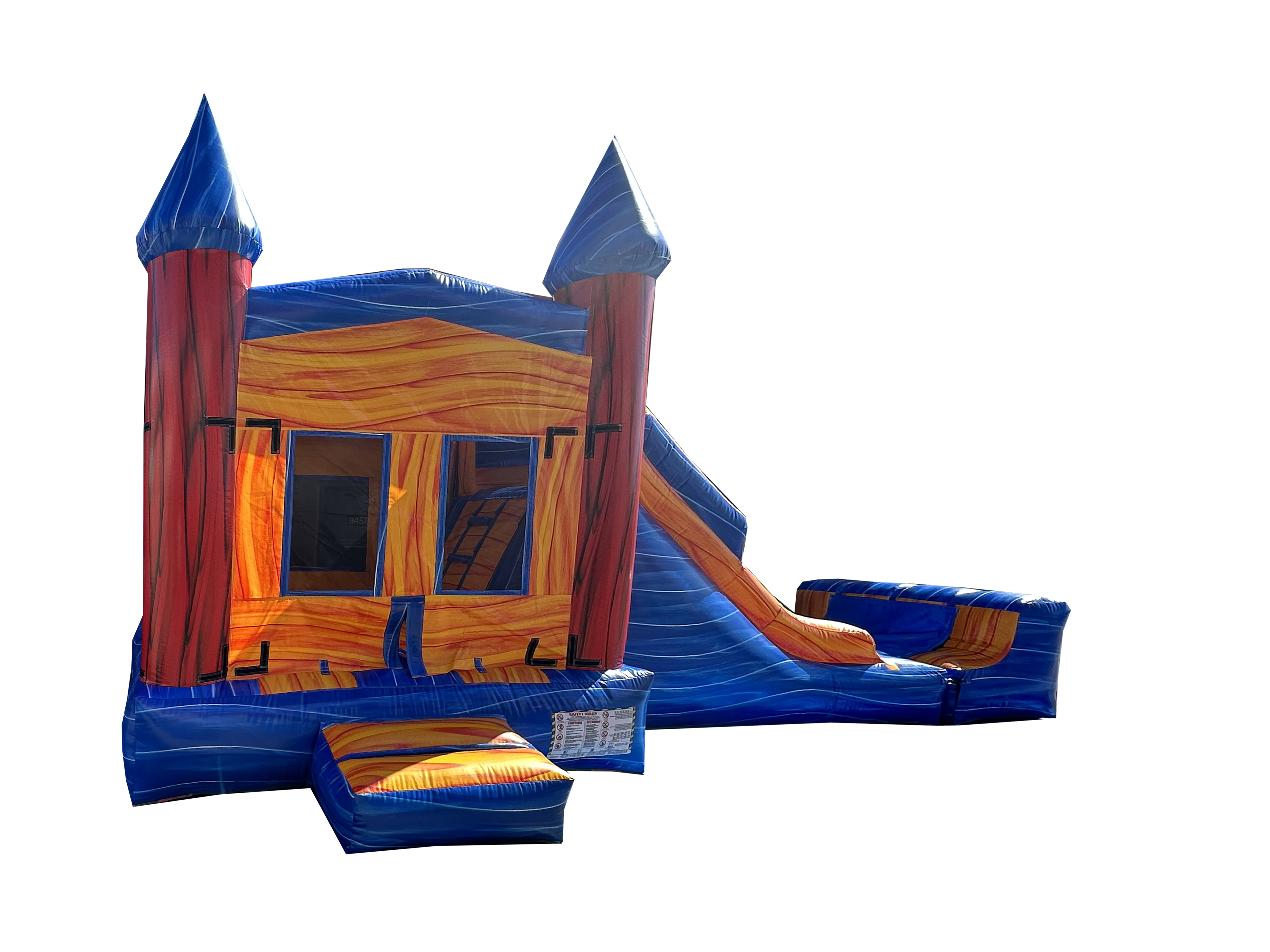 This inflatable game is always a hit at any event! It may be used wet or dry & it includes spacious jump area, Pool and detachable Stopper. a basketball hoop (inside), a challenging wall climb & a tall slide. You have the option of adding a Basket Ball Hoop in the jump area at an additional cost. Our Products are made and designed with commercial 18oz PVC knife coated vinyl “lead-free” UV resistant that will last extreme weather conditions.