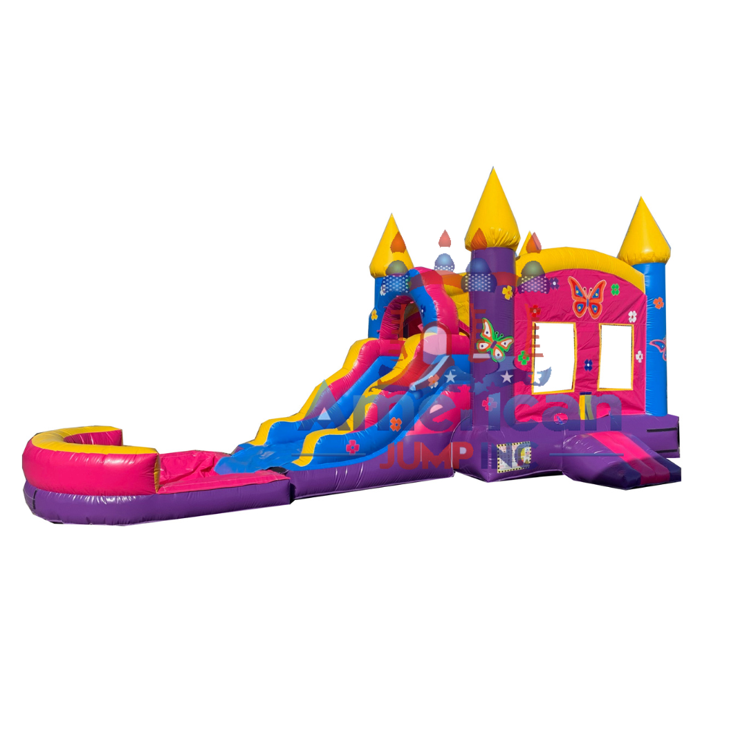 This inflatable game is always a hit at any event! It may be used wet or dry & it includes spacious jump area, Pool and detachable Stopper a challenging wall climb & a tall slide. You have the option of adding a Basket Ball Hoop in the jump area at an additional cost. Our Products are made and designed with commercial 18oz PVC knife coated vinyl “lead-free” UV resistant that will last extreme weather conditions.
